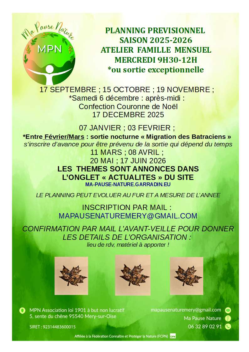 ATELIER FAMILLE - SAISON 2025 26Planning prévisionnel BP MensuelSophrologie en pleine nature - Saison 2025 26BUNGY PUMP & HISTOIRE - saison 2025 26